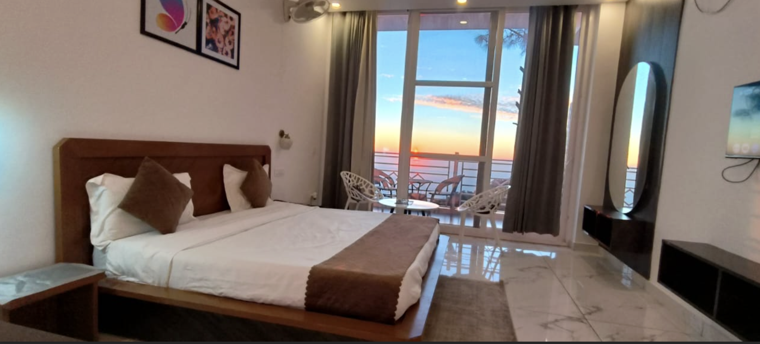 Nestled at 6,000 feet in the misty embrace of Kasauli's ancient pine forests, The Pine Paradise's Deluxe AC Room is an intimate retreat where Himalayan grandeur meets indulgent serenity. Wrapped in the whispers of deodar trees and cooled by mountain breezes, this exquisitely appointed sanctuary features a private room overlooking panoramic valley vistas that stretch endlessly toward the snow-capped peaks. Floor-to-ceiling glass walls blur the boundaries between your cocoon of comfort and the untamed wilderness beyond, while heated floors and plush amenities ensure year-round warmth. Perfectly positioned for sunrise meditations on your private deck and evening soaks under a canopy of stars, this room is designed for couples and discerning travelers seeking romance and rejuvenation. It's more than a mountain escape; it's a symphony of colonial charm and contemporary luxury, where every moment invites you to breathe deeper, slow down, and reconnect with both nature and each other at The Pine Paradise.